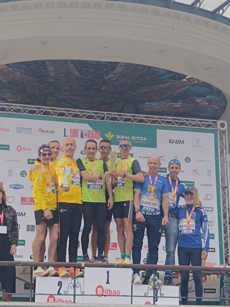 Este pasado domingo 9 de marzo, Bilbao fue escenario del 16o Campeonato de España de 10 km en ruta, tanto en categoría Absoluta como Máster, con la prueba 10k Bilbao Rural Kutxa como protagonista. Javier Martínez destacó en la categoría M45, logrando un merecido 2o puesto. Además, el equipo M55 del club, compuesto por Jesús Mateo, Ángel Lebrero, José Laguna y Juan Vergara, subió al segundo peldaño del podio en la clasificación por clubes. ¡Enhorabuena a todos!